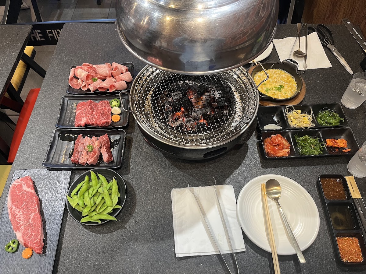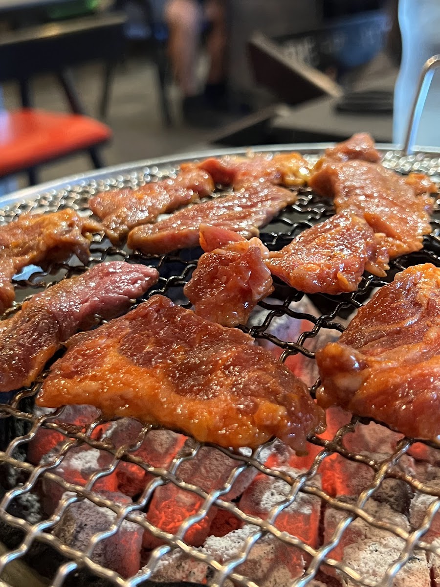 This is the best Korean BBQ we have ever had. Real charcoal grills! My wife and I have been to quite a few Korean BBQ places, and this is our new favorite. Amazing food and excellent service. Get here early though, and even then, expect to wait a little bit. Well worth it though. We recommend the lamb, the brisket, the tongue, the ribeye, the short rib, and the pork belly. Everything we had was out of this world.