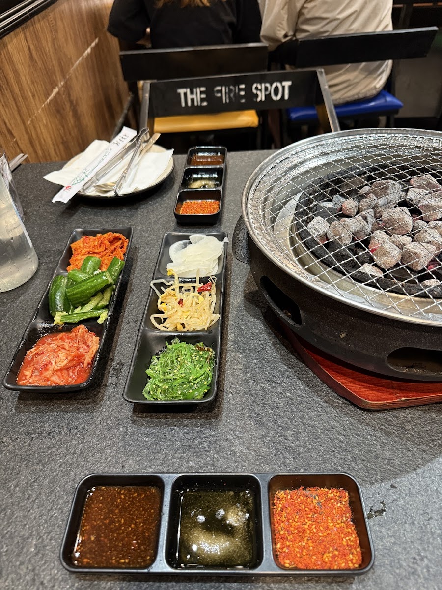 The Fire Spot in San Diego is a must-visit for anyone craving a flavorful fusion of Chinese, Korean, and barbecue cuisines. After returning from our trip to Mexico, we had dinner here with our son and were thoroughly impressed by the quality and experience this small but mighty restaurant offers. The standout feature here is the charcoal grill, which brings a smoky depth to their high-quality meats. We opted for the prime option (5 more), and it was worth every penny—especially for the tender ox tongue and juicy ribeye. The sliced brisket and marinated short ribs were also exceptional, cooked to perfection at our table. The sides were flavorful and complemented the meal beautifully, ensuring every bite was memorable. While the dining area is cozy, the attentive service ensures your time is well spent. They enforce a 90-minute dining limit, but the staff is quick and efficient, keeping the experience enjoyable without feeling rushed. A heads-up: it’s a popular spot, so you’ll need to put your name on the waiting list upon arrival, and peak times can mean longer waits. Parking is fee-based, and payment requires scanning a QR code—something to keep in mind when planning your visit. Despite the minor inconveniences, The Fire Spot delivers a savory, sizzling feast that’s well worth it. For an elevated Korean BBQ experience with top-notch meats and a cozy vibe, this place is a gem.